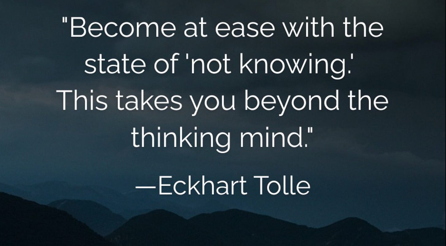 And then this morning, an Eckhart Tolle quote popped up in my feed and it felt like a little nod of affirmation as I sit in the not knowing and practise moving beyond the thinking mind.